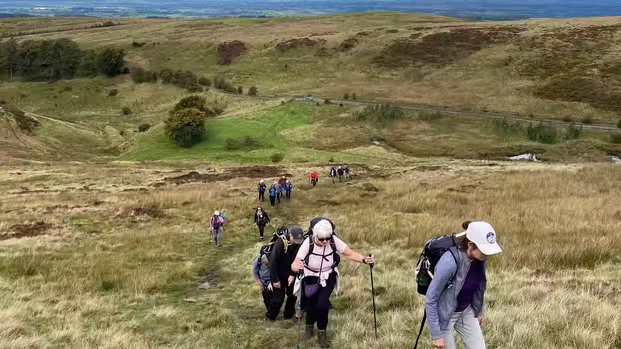 22 Wednesday walkers out today enjoying a gentle climb to summit of Talkin Fell .